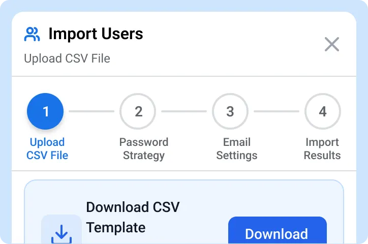 Import hundreds of volunteers through bulk CSV upload or shareable invite links. Each person gets their own login with role-based access. Creators never see or touch your social media credentials. When a volunteer’s term ends, deactivate their account without resetting passwords or losing their content history.